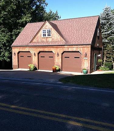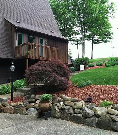 Unique Property! A frame design nestled on a 1.89 acre wooded, picturesque lot. This home truly brings the outside in. Pristine condition w/+$100K in updates. Soaring great rm, din rm, area. Renovated kit + baths, rec rm/office w/dual sliders to concrete patio area. Walk out expansive deck off great rm above. Great rm has wdbnr. Dual Pella sliders + entire wall of dimensional windows. Updates include newer Pella windows + doors, carpet, paint, flrg, lighting & plumbing, fixtures, deck '97. Solid doors on main level. Kitchen totally redone. Solid countertops, cabinetry, Hickory flrg, moulded sink & new fixtures. Upper master suite has private deck, dual closet and looks over to great rm. Cherry on top is awesome 3 car det garage w/additional storage above.. 2 year old 10x14 pine tongue & grove pine shed. Concrete walk and stairs. Stone walls & $20K of prof landscaping. Hurry! Qualified Buyers Please.