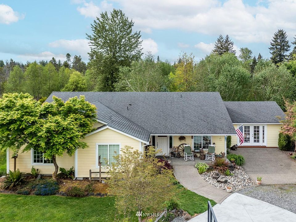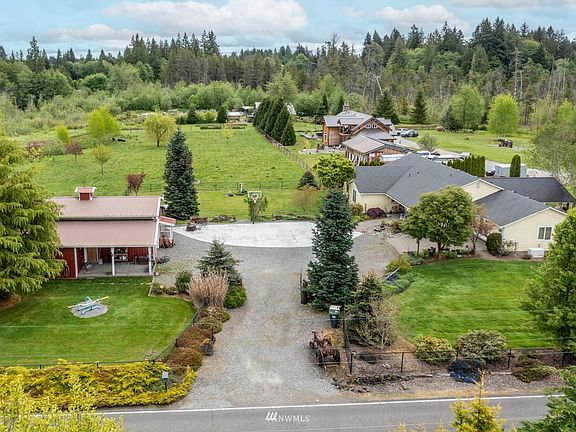 Tumwater 5.5 acres ready for your horses or cows. Only 1.5 miles off I-5. 2,800+ sq.ft split bedroom rambler. Detached shop supported by a finished office space, horse stable with 2 stalls. This home features vaulted ceilings, 3 generously sized bedrooms, a den that function as a 4th bedroom, plus a bonus room. Open concept kitchen with an oversized island with a beautiful granite slab, 2 pantries, and stainless steal appliances. Enter through the solid wood French doors to the oversized primary suite with 5 piece bath, soaking tub, and walk in closet. Huge covered back porch, heat pump, Generac generator, gated entry, and electric fencing for the animals. Come view this gorgeous property today!