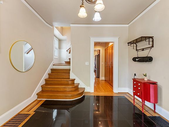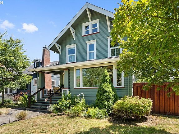 OPEN HOUSE; July 6 & 7 from 10AM - 3PM. This fabulous, four-level 1912 Foursquare Craftsman is located in the picturesque heart of the Piedmont neighborhood. Beautifully restored with stunning oak hardwood floors - some with walnut inlay - as well as boxed beam dining room, newer gourmet kitchen featuring custom Neil Kelly cabinetry, hammered copper sink, gas range, and granite countertops, this home is a celebration of early 20th century architecture with modern upgrades. The third floor offers a private primary suite with newly expanded bath, serene sitting area, and newer mini-split, so both hot summer nights and cold winter mornings are blissfully abated! An extensive professional remodel in 2015 included updates to the kitchen, baths, roof, plumbing, paint, and HVAC system. An oversized garden shed (or potential office?) and a custom, remote-controlled security gate added enhancements, while the exterior received a fresh coat of paint in 2017. With covered porches in both back and front, this generous foursquare home retains its historic charm, enhanced with modern amenities. Don't miss out on this architectural treasure in the shadow of lovely Peninsula Park and conveniently located within a mile of Mississippi District's shops and eats.
