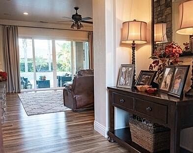 Beautiful, move-in ready home in one of NW Visalia's most sought-after neighborhoods! This Amber Crossing stunner won't disappoint. It's like walking into a showroom! The gorgeous custom stone wall, with fireplace in the living area, welcomes you as you look out onto the beautifully maintained backyard through the floor-to-ceiling glass doors. A smart, open floor plan connects the living room, granite kitchen and cozy breakfast nook, with a separate, formal dining room. The large master bedroom, with master bath, soaking tub, walk-in closet and several linen closets, round out this split floor plan. This home also features plantation shutters, with newer flooring. Ample storage in every room, large lot and a 3 car garage are a bonus! The sparkling pool with two waterfalls, a new outdoor kitchen, built-in firepit, surround sound and a large, covered patio make this an entertainer's dream; your true oasis awaits!