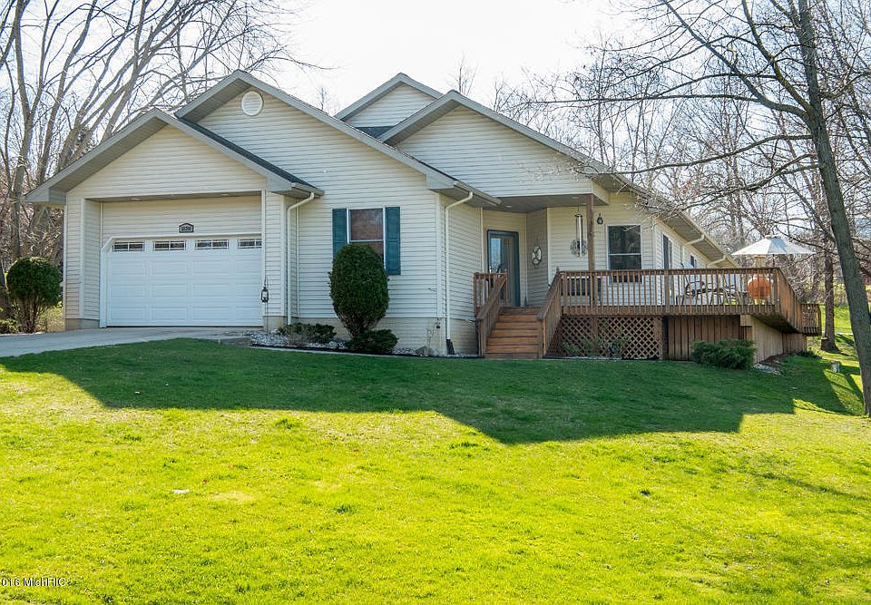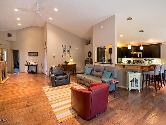 Welcome home to 58380 Sunset Shores Ct! This 4 bedroom, 2 bath ranch, complete with a fully finished basement, is just what you've been looking for! High ceilings, modern flair and unique wall structure brings charm and visual appeal, plus neutral paints and hardwood floors make the home easily adaptable to most any taste. The open floor plan, with seamless access from room to room allows for plenty of space to stretch out. Enjoy your next meal in the breakfast nook that has been prepared in thi s gorgeous kitchen! Sleek cabinetry, stainless steel appliances and dropped lighting will easily make this spot a favorite in the home. Just steps away is the open laundry area, with convenient main floor access. Retreat to the master suite furnished with a gorgeous, rich dual sink bath that includes a deep tub and also a large walk in closet. The other bedrooms are spacious and full of natural sunlight, each providing access to the outside deck, and another could easily be used as an office.
