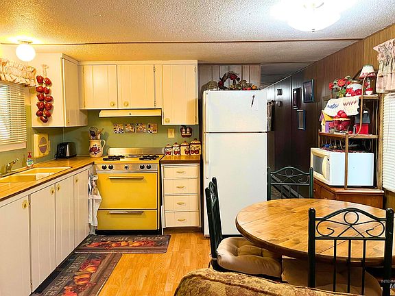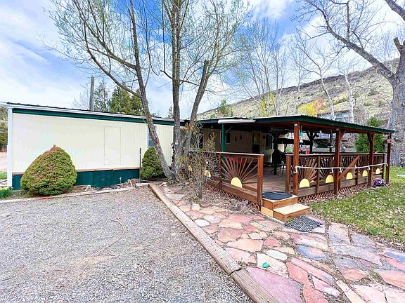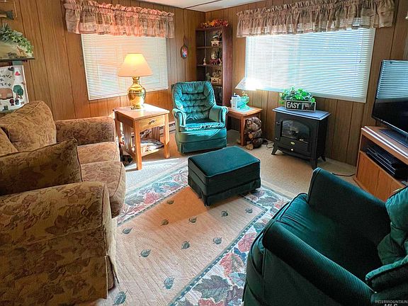 River Property! Here's your opportunity to own a home on the river. This cute and clean 2 bedroom mobile home includes all appliances, living room furniture, kitchen table, portable fireplace, 2 beds and 2 dressers. Beautiful wood covered deck, manicured lawn with sprinklers. One metal shed and one bully barn for great storage. Property is sold "AS IS Where IS". The little boy fishing off the bank is named Charlie and stays with the property.