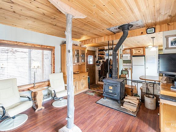 Located at Murphy Hot Springs and 15 miles from Jarbidge. Perfect for personal residence or second home. Property includes 2 bedroom 1.5 baths mobile home which sits on 4 lots. Home has beautiful wood finishes, updated kitchen and bathroom, wood stove, new insulated siding, steel roof and 12 x 16 heated and insulated bonus room currently being used as a sewing room but would make a small workshop. Enjoy soaking in the submerged wood stove heated Cedar hot tub and don't forget to bring your ATV's, Side by Sides and enjoy your days outside exploring nature.