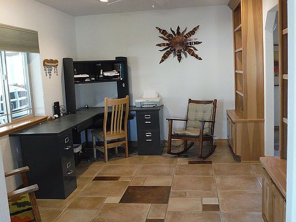 1400 sq ft home, open floor plan, lots of tile. Attached 3600 sq ft of RV parking and garage/shop. Shop is fully finished w/wood stove, epoxy floors, cabinets, 1/2 bath, office. Over 1 acre of beautiful rock and plant landscape on auto drip system. Completely fenced with gate. 1400 sq ft of covered carport/patio (sheetrock/textured ceiling w/can-lights. 2-cord wood box next to patio. Just too many highlights to list.....