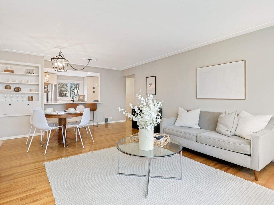 Treehouse views from this turn-key rambler oasis in prime Kenny neighborhood. Every inch of this home has been updated, highlighted by the incredible chefs kitchen with stainless appliances, quartz countertops and large pantry. Flooded with light, and offering three bedrooms on the same floor, with a 4th bedroom/office on lower level with new ensuite bath. Relax and enjoy views of Grass Lake from your large and private maintenance free deck. Vintage pink tile bathroom with recently updated vanity, mirror and light. The lower level walkout is flanked with windows, tall ceilings, newer carpet, and plenty of space to host large gatherings. Backyard with gravel patio, and lush natural ground coverage so no mowing. Rare attached garage means you don't have to set outside in the winter, and no fumbling for keys to enter your home. Incredibly convenient location, across from a park, 3 mins to grocery stores, + quick access downtown or to local restaurants. 1-year HSA home warranty included.