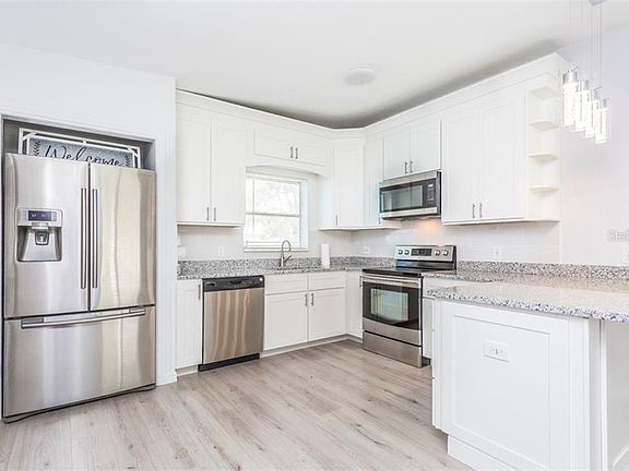 LOCATION! LOCATION! LOCATION! Located in downtown New Port Richey walking distance to Main St. and a block away from the Hospital. Completely re-done and ready to move in. NEW beautiful kitchen with new cabinets and granite counter tops, NEW Vinyl floors, Newer A/C and freshly painted with neutral colors. This spacious home offers 3 bedrooms, 2 bath, the 3rd bedroom could be a large family room and an indoor laundry room. Home is on a large fenced lot with rear alley access - plenty of room to add a larger shed.