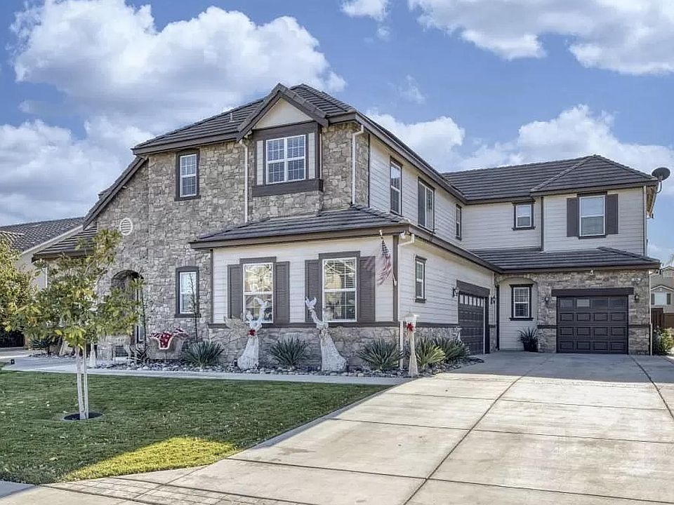 FORMER MODEL! Loaded with upgrades and tasteful decor. Gleaming kitchen boasts granite slab counters, dark cabinets and stainless steel appliances. Highly upgraded carpet and pad. Gorgeous travertine tile floors in high-traffic areas. Two-tone interior paint. Classy crown mouldings in master, living room, dining room. Built-in speakers in family room and hallway, laundry sink and security cameras. Lovely plantation shutters. Amazing rear yard highlighted by Pebble Sheen pool with raised spa and sheer descent water feature. Aluminum patio cover for shade. Even a putting green to take strokes off your golf game! 5 true bedrooms plus loft plus large bonus room upstairs. Bonus room has sink and wine refrigerator. Full bed and full bath downstairs makes for great junior master suite. Ample side yard on left side. Great location has no neighbors directly behind. Paid-for solar system means LOW electric bills! 36 panels. 9.54 kW. Original cost was over $38K. OWNER PAYS WATER AND SEWER PETS ALLOWED