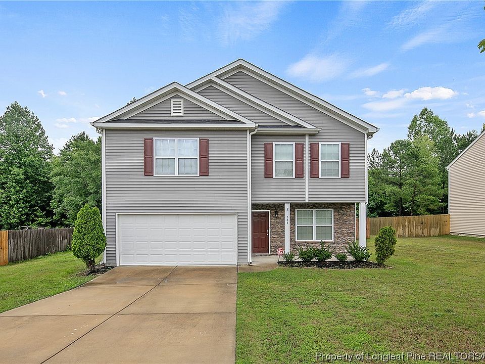 This stunning home offers a comfortable and inviting living space with 3 bedrooms, 2 1/2 baths, and an abundance of natural light. The kitchen boasts ample storage space, stainless steel appliances, an island, and breakfast area. The spacious living room is warm and inviting with natural light and a fireplace. All bedrooms and the laundry area are conveniently located upstairs. The primary bedroom is a true retreat, featuring a vaulted ceiling and a generous walk-in closet. The attached primary bathroom is beautifully designed with dual sinks, a soaking tub, and a separate standing shower. Step outside to the privacy fenced backyard, a perfect oasis for relaxation and entertaining.The location of this home provides easy access to shopping and dining options, ensuring that all your needs are just a short drive away. Commuting to Fort Liberty and Raleigh is a breeze. And let's not forget about the HOA amenities! Don't miss out on the opportunity to make this house your home!