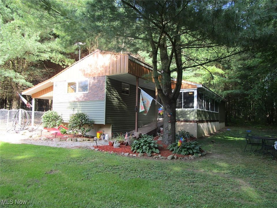 Tranquility awaits at this secluded, tucked-off the road single story home w/ all the privacy you've been looking for! SOOOO many updates! All new windows (tilt-ins) & doors in 2019/new metal roof in 2018/HW heater in 2023/HUGE enclosed porch-sun room in 2022, all done in treated wolmanized wood w/screened in windows overlooking the ravine down to the Lebanon Creek/new coal burner professionally installed in March of 2024 which heats the entire house/new driveway base & gravel in 2023/UG electric from the road-no wires to worry about when it storms! & a covered ramp for those rainy days! Sited over 600' off the road w/lush mature landscaping, a 2023 30x20 garage/carport w/7' OH opening, a 9x46 metal storage bldg., a handy circle drive, a chain link fenced front yard (90x60) for the safety of your children & pets, w/ 2 EZ access gates. There's an add'l 30x11 attached carport on the front of the house for easy access when un-loading your shopping! Inside boasts a cozy kitchen w/plenty of eat-in space & cabinet/counter space, all completely updated from the originals. LR faces the shady fenced front yard (& the front door already has your dog door installed!) & there's also French doors out to that amazing sun room (w/an extra 15x10 storage room tucked on the end)-what an absolutely perfect spot any hour of the day, looking out into the wooded ravine which is teeming w/ birdsong & wildlife.Bathroom combines w/laundry hookups for handy all-on-1-floor living & its HUGE, w/ its own access door to the sun porch.2 bedrooms round out the floor plan for a super quiet, very affordable, back to your roots life style.Elec wall heater in bathroom is non-functional & seller chooses not to use the 1 in the LR. Elec bill runs less than 75.00 / month & taxes are unbelively low.SOOO close to Pymatuning Lake for all your weekend fishing! Decorative farm implements & appliances excluded.New well will be drilled by closing.House is titled & will require cash or a few specific lenders.