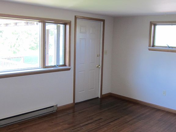 Apartment located in country setting and near local highways. 2nd Floor, well-maintained 1 Bedroom, 1 bathroom, kitchen, living room, porch and large yard. Hardwood floors throughout apartment. In the basement, for the tenant's convenience, are a coin-operated washer, two dryers, and a storage unit. Landlord responsible for lawn and trash services, snow removal, and water and sewer. Tenant pays for electric heat, electric hot water, and electric. Cable, internet and phone services are available. Credit check and rental history required and minimum FICO score of 630 necessary to apply. A $35 per applicant fee is charged with completed rental application and is non-refundable. One cat permitted with conditions and additional deposit. No dogs, except are required by law. Proof of Renter's Insurance must be presented within 30 days of occupancy. Minimum monthly gross income for this unit is $2, 055.