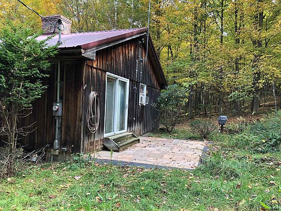 Custom 2 bdrm home (original house plans called for 3rd bedroom) features custom built cabinetry & built ins. Wide plank wood flooring, see thru fireplace, and gorgeous 34.9 acres of woods! Property has not been logged in nearly 50 years. Basement is partially finished and could easily be converted to additional living space. Basement has woodstove & renai heater as well. 2 car garage under residence and a separate 2 car garage on property. Great location!