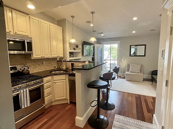 Welcome to 584 E 7th St, Unit 3 - an exceptional 1-bedroom, 1.5-bath penthouse apartment with harbor views and modern amenities in the heart of South Boston. FREE - FIRST 2 WEEKS: 10/15 - 10/31. Available starting October 15, this stylish residence offers an open floor plan complete with gas fireplace, walk-in closet, and convenient in-unit stackable Maytag washer and dryer. The kitchen is equipped with premium Bosch appliances and breakfast bar, perfect for entertaining or enjoying casual meals. The built-in speaker system with Bluetooth adds ambiance for relaxing and hosting friends. Step outside to two private decks with both city and harbor views, offering a perfect setting for enjoying outdoor living. Ideally located, this home is a short distance from the beach, grocery store, convenience store, public transportation and a free community gym. 584 E 7th St, Unit 3 provides a perfect blend of comfort and convenience for anyone seeking the best of city living with a beachside vibe.