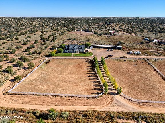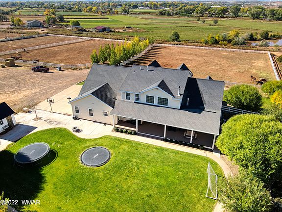 One of a kind horse property in Snowflake. Beautiful views of the silver creek valley on a quiet dead end road. Property includes a 7 stall covered barn with hay storage along with 2 large turnouts. 5300 sf home features 5 bedrooms, 4 bathrooms along with Large Bonus room over garage along with a workout/exercise room. Open concept kitchen with granite countertops opens into large family gathering area. Pride of ownership evident throughout.