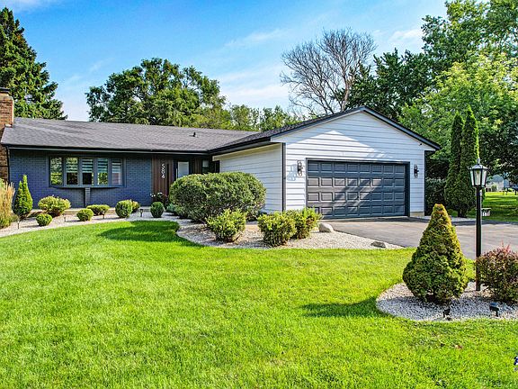 This beautifully remodeled, sun-filled ranch sits on a spacious half-acre lot, offering both comfort and modern style. The home features 3 bedrooms and brand new 3 bathrooms, plus an additional office/bedroom in the fully finished basement. Enjoy cozy evenings by the fireplace and entertain in style with an oversized island in your brand new kitchen and top-brand stainless steel appliances. The home boasts new hardwood floors, custom carpentry with accent walls, new doors and trims, and a walk-in closet. The basement is a true entertainment haven, complete with a bar, custom staircase and a custom laundry area. Outside, you'll find a patio, a private area with a new firepit, and a storage shed. 2 car garage with an extra wide driveway. This property combines modern elegance with functional living spaces, making it an ideal retreat.