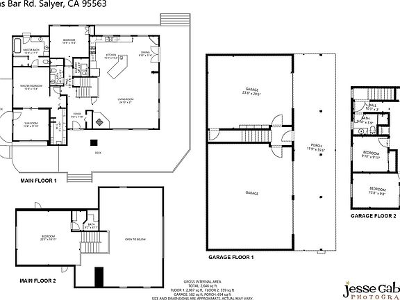 The main home has 3 bedrooms, 2 baths with the potential for a 3 bathroom that is all plumbed and ready for your touches. The guest home is 1500 sq foot 2 bedroom 1 bath and sits up over the garages, makes for plenty of room for family or use it as a vacation rental for secondary source of income. Plenty of outside space to enjoy the warm summer sun, put in a pool, garden or just enjoy and make memories with friends and family! Vaulted ceilings, river rock designs, outdoor shower, wrap around deck, outdoor speaker system, transfer switch with a generator and so much more! This is a must see property!