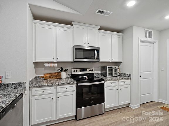 Lease to purchase option available. 5% deposit required with up to 36 month lease. Practically new and meticulously maintained, this ranch-style home sits on a premium lot backing to trees for added privacy. The open floor plan features LVP flooring, beadboard doors, vaulted ceilings, and curved wall corners. The kitchen is equipped with granite countertops, stainless steel appliances, staggered cabinets, and a breakfast bar. The vaulted great room flows into a spacious dining area, perfect for entertaining. The primary suite includes a vaulted ceiling, raised vanity, granite countertops, and is prewired for a ceiling fan. Both bathrooms feature granite and upgraded finishes. Enjoy the extended patio and large backyard, ideal for relaxing or hosting. The finished garage includes a pull-down attic for extra storage. Located minutes from Hwy 77 with easy access to Columbia and Charlotte. Washer, dryer, and refrigerator included—truly move-in ready! **Seller offering buyers home warranty from APHW for $499 at closing!