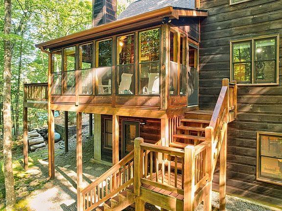 Take your retreat from the noise and distraction of city life to your tranquil cabin in the woods. Located less than 5 miles to downtown Blue Ridge, you are just a few minutes away from the amazing restaurants, shopping, and entertainment our quaint little town has to offer. Imagine enjoying a cup of coffee on the covered front porch, the rich flavor complemented by the crisp morning air. The peek-a-boo long-range view from your rocker is especially breathtaking as the seasons shift providing some of the most extraordinary sunsets. Enjoy a good book as you saturate in the beautiful light that surrounds you in the sunroom overlooking the gorgeous forest in your backyard. The birdsong and the rustle of leaves create a symphony of natural sounds. There is much fun to be had in the evenings as you gather together with plenty of room to socialize in the finished basement that is equipped with a wet bar and foosball table. This 3 bedroom/ 3bath cabin offers a cozy sleeping loft for extra family and guests that come to visit you in the mountains. The exterior is well maintained with a Leafguard Gutter system and the interior is immaculate. There is a nice shed/workshop with power for extra storage and tinkering with projects. Keep this cabin all to yourself, as your own personal escape, or share it with others as this would be an enchanting vacation rental.