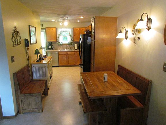 Pristine newer townhouse (1998) with cheaper taxes($1,706), Main floor has a family room, combo full bathroom and laundry room, deeper than usual 1 car attached garage with access directly into the house, 2nd floor has living room, kitchen with eating area with door leading to a larger private covered deck which which backs up to a larger wooded area, 2 bedrooms and 1 full bath, full lower level basement ideal for additional storage or workshop etc, 1 car attached garage deeper than usual providing additional storage, professionally sculptured ceiling thru out, newer oak kitchen, central air, replacement windows throughout, maintenance free exterior.