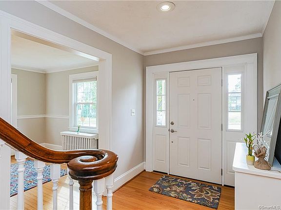 This pristine home is a short walk to Blue Back Square and West Hartford center. Just pack your bags and enjoy this traditional center hall Colonial with a spacious front to back living room featuring a gas fireplace, recessed lighting and adjacent to a lovely sunroom or office with a French door leading out to a private deck with bench seating. Host family and friends in the formal dining room with crown molding plus chair rail details. There is a French style swinging door to the recently remodeled kitchen offering custom cherry cabinets, granite counter tops, tile floor, recessed lighting plus stainless appliances including a beverage center. There is also a spacious family room with tiger wood floors, a built in wall a/c unit, an exposed brick wall, separate zone gas heat plus a slider to the deck. The 2nd floor has lots of extra custom builtin storage in the hallway. The large master has 2 closets (one double size and one single. There are 2 additional bedrooms and access to a walkup attic for more storage. The main bath has been totally remodeled and includes an air jet tub. All this plus refinished HW floors throughout, freshly painted interior, newer roof, mostly newer windows, detached 2 car garage with newer garage doors, gas heat and hot water plus 200 amp electrical. Convenient location with easy access to highways, restaurants and more.