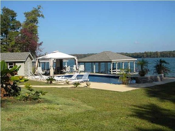 One of the most spectacular homes ever build on Lake Jordan! Built in 2005 as a Builder's personal residence, this is a top of the line executive style home with custom features and excellent workmanship. Gorgeous waterfront setting with an inground saltwater pool. It has 165 ft of waterfront with a double boathouse, pier and even 2 jet ski lifts. The elaborate interior features ornate trim work, a rock fireplace with hand carved mantel & built-in shelving in the great room, 4 fireplaces total, hardwood flooring, surround sound and smooth ceilings throughout. Designed for entertaining and living, the kitchen has granite countertops with work island & tile backsplash. Enjoy the breathtaking view over the lake each morning from the sunroom. The enormous master suite has an oversized shower with 2 showerheads, jetted garden tub (& fireplace), marble wrapped windows, double vanities, large walk-in closet and plenty of space for an office area. The downstairs guest suite also opens to a se