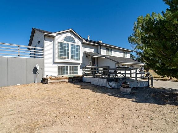 4 bedroom 3 bathroom home on over 6 acres with a 1600 sq/ft SHOP! The seller has spared no expense getting this home ready to sell. Newer microwave and kitchen stove, sliding doors were replaced in 2017, new swamp cooler, wood deck freshly painted, basement freshly painted, new outdoor lighting, added additional downstairs outlets, on demand water heater and water softener installed in 2017, additional insulation installed in basement walls and ceiling, new garage door openers, updated laundry room, custom updated tile and granite counter tops inside the bathrooms, downstairs bathroom dual headed shower, and upstairs jetted tub with built inline water heating element. Roof was replaced in 2015, shop roof was replaced in 2012. There is a pellet stove upstairs as well as downstairs, 2 family rooms and amazing views! The lot is fenced and cross fenced for horses or livestock. This property backs up to BLM land and is level and cleared!
