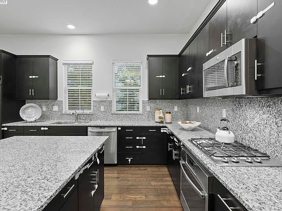 Luxurious and bright 4-bed/3.5-bath contemporary townhome in one of Newark's best communities. Offering a brilliant mix of modern updates, tall ceilings, a well-laid floorplan, and a generous amount of natural light. On the first level, you'll find the 2-car attached garage and a bedroom with an ensuite bath and closet. Stairs lead to a chef's dream kitchen with sleek countertops and stainless steel appliances, in-unit laundry, a cozy living room for entertaining, and a private balcony with great views. The third level offers three spacious bedrooms with access to polished baths and large cabinet spaces. The community's location also puts residents close to vast dining options, shopping, and a few minutes away from I-880, I-680, Dumbarton bridge, and BART. Definitely a must see!