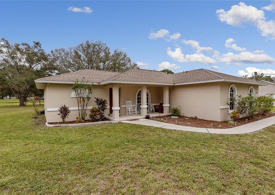 A rare find in South Lakeland! One owner home featuring 2 bedroom and 2 baths situated on 1 acre of beautiful land in a great location. This home has been well taken care of- New AC in 2019, Exterior Painted in 2020, New Roof in 2014. You will like the open design with cathedral ceilings and an open kitchen with plenty of counter space and cabinet space. The kitchen includes the refrigerator, stainless steel range and dishwasher and owner is including the washer and dryer also. Split bedroom design for privacy and relax on the 11x10 screened lanai overlooking the private, quiet backyard. No HOA! There is a side entry 1 car garage for parking and storage. There is a storage shed on the back of the property close to the rear property line with well and septic. Close to I-4, Brandon and the new Publix on County Line Rd, this home is a must see!!