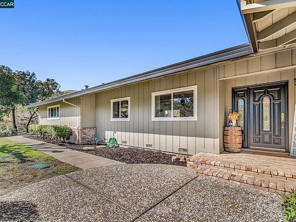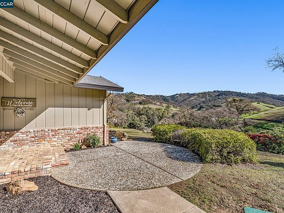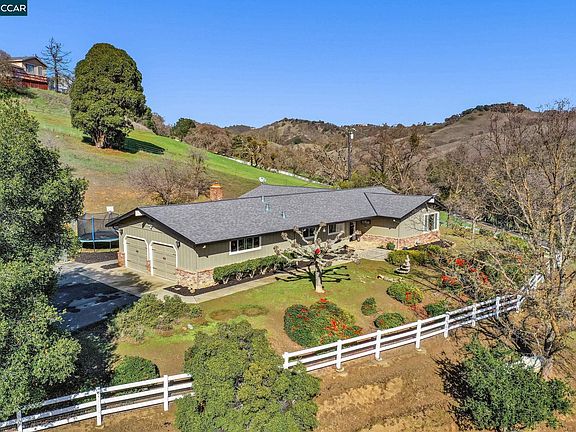 Gorgeous views of the rolling hills and valley. This custom single story ranch home has 3 bedrooms, 2.5 updated bathrooms. Newly remodeled light filled kitchen with extensive white cabinetry, quartz counters, SS appliances & large island perfect for informal eating and entertaining. Kitchen is now open to family room with beamed ceiling, cozy pellet stove and views of backyard. Formal dining room and large formal living room (currently used as playroom and gym) Large primary suite has sliding glass door to the backyard patio, updated dual sink vanity separate from shower area. Well thought out almost 5 acres fenced and gated. Barn currently set up with 3 stalls, tack room, hay and equipment storage, new cement breezeway with drainage, water, electricity, paddocks. Extra storage unit just off to the side of barn. Seasonal pond. Pastures. Plenty of room for all of your toys, animals, gardens and play areas. Whole house generator if needed. Newer roof. Very close to miles of trails for hiking, biking & trail riding. Located just about 3 miles down Morgan Territory and approx. 10 min to downtown parks, schools, restaurants, shopping. Such a special home and country community.