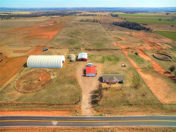This Home is Gorgeous! Built W/Quality & Comfort in Every Room. Featuring a Vastly Open and Fully Functional Floor Plan this Private Country Home Offers 3 Beds, 2 Baths, New HVAC, Large Storm Shelter, 12X12 Storage W/Electric, & a 30X40 Garage all on 25.669 Acres! Bring Your Horses to this Amazing Horse Property Offering a 6 Stall Barn W/Utility Room, Hay Storage, Electricity, & Tack Room. You Will Love the 60X126 Indoor Arena or 110' Round Outdoor Pen! The Inviting Living Room Offers an Open Floor Plan, Large Windows, & Vaulted Ceilings. Entertain in the Beautiful Kitchen W/Wrap Around Breakfast Bar, Built In Microwave, & Large Eating Area. Relax in the Spacious Master Sweet W/Walk In Closet. A Master Bath has Double Vanities, Walk In Shower, & Jetted Tub. 2 More Bedrooms & a Full Hall Bath Give you Plenty of Living Space. Enjoy Outdoor Living Under the Covered Patio Overlooking the Peaceful Fully Fenced Acreage. Minutes from I35 for an Easy Commute This is One to See!