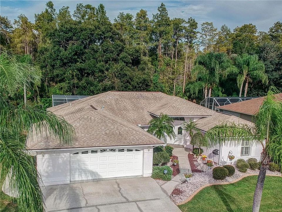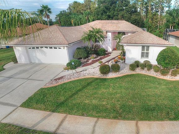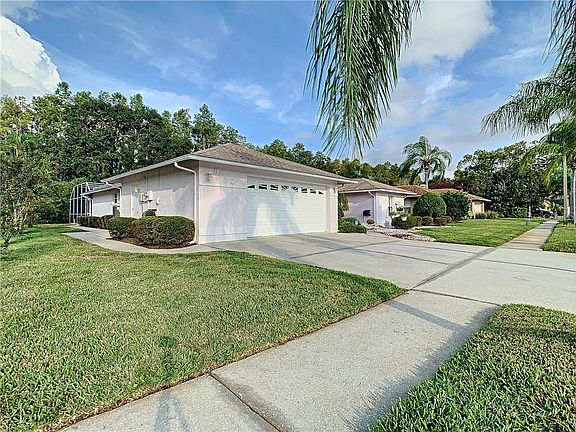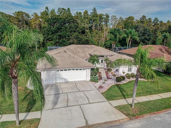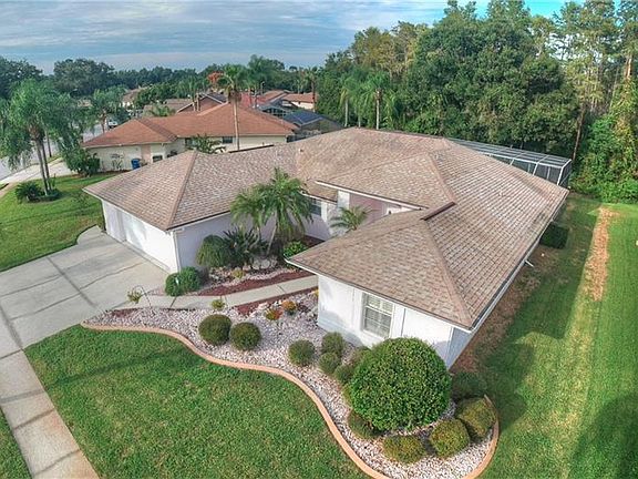 Welcome home to your immaculate 3 bedroom, 2 bath pool home overlooking a serene conservation area in the prestigious River Crossing neighborhood. This home has all the amenities of Florida living including an oversized pool deck and lanai, with a pool side bathroom, complete with toilet and shower. As you enter the double door entry, you are greeted with vaulted ceilings and a split floor plan. The large master bedroom includes his and her closets, Hunter Douglas plantation shutters and a recent renovation of the master bathroom including lighting sensors for energy efficiency. This home offers many opportunities to engage your family, whether in the living room with track doors that completely open up to the lanai or the family room with a wet bar, or the eat-in kitchen with a bay window overlooking the pool and conservation area. Want a day out? As you leave your oversized 2-car garage with updated flooring, enjoy nearby Starkey Park complete with nature trails, picnic areas and overnight camping. Shopping areas, local restaurants, and hospitals round out this stunning home and neighborhood. Welcome home!