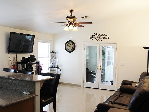 BEAUTIFUL 1 STORY HOUSE WITH 3 BEDROOMS AND 2 FULL BATHS,TILE THROUGHOUT THE HOUSE,KITCHEN GRANITE COUNTER TOP,BEDROOMS WITH CLOSET MIRROR DOORS AND CEILING FANS, LARGE BACK YARD,COVER PATIO, RV PARKING, GARAGE CONVERTED TO A **STUDIO RENTED FOR $800**