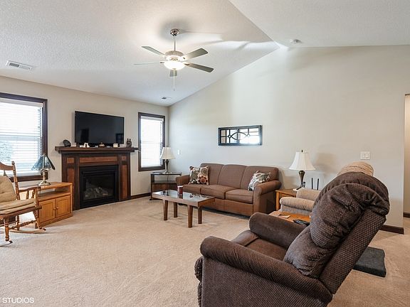 Spacious ranch townhome that is a one owner and meticulous! Over 1460 sq ft and very open floor plan. Zero entry and wide hall ways plus vaulted great room that includes a fireplace and abundance of windows. Kitchen has a large center island and stainless steel appliances. Bonus sun room leads to a patio for entertaining. Master has vaulted ceilings and an en suite bath with dual vanity and walk in shower. Laundry room and storage closets are good size. Mature landscaping and two car garage. Call today!