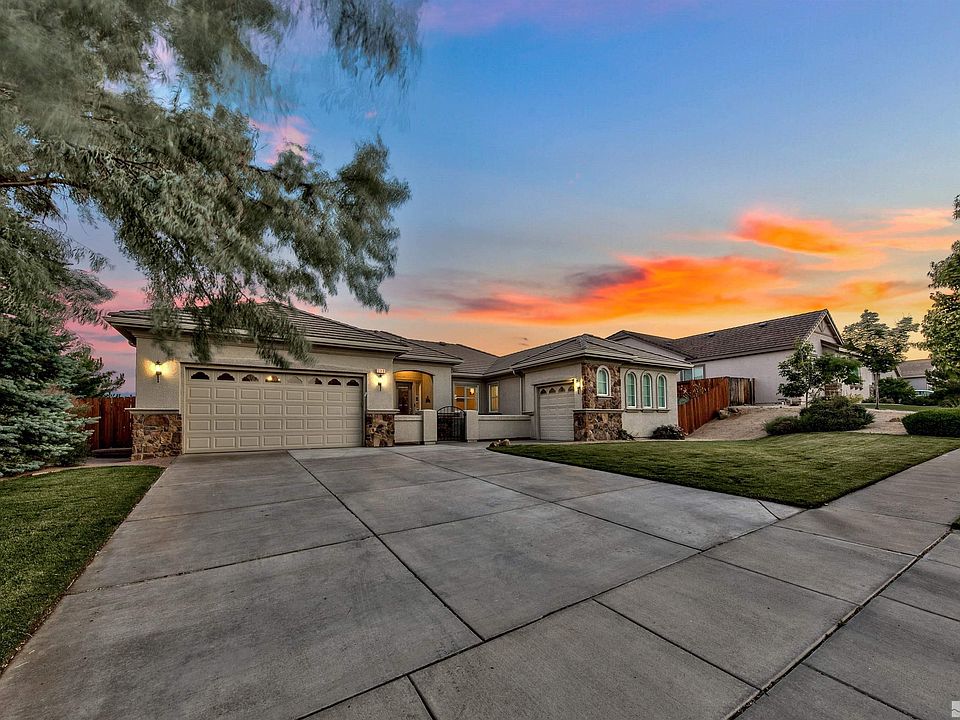 Level access home with outstanding city and Sierra Nevada views. Everything you need is on the entry level: Master, greatroom, office, guest wing, 3-car garage, BBQ deck and panoramic views. This home features high ceilings, hardwood flooring, stainless steel appliances and custom cabinets. Not to be overlooked is the walk-out basement with guest bedroom, game room, wet bar and access to the hot tub, pavers and level, fenced backyard. Only 40 minutes from Tahoe. Nevada residents enjoy zero state income tax., Enjoy direct access to the Peavine trail system.