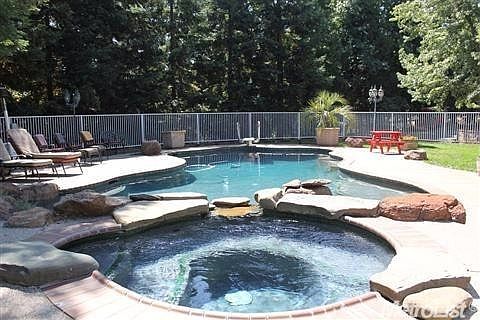 Grand property with room for all. 14 acres for pasture, farm animals, dirt bike trails or just hikes. Property sits behind private gate on paved roads. Large garage shop for the car collector. Home is beautiful with formal dinning room and living room. Also has cozy family room, dinning area in kitchen. Media room with bar, or just a grand game room. In home office with high speed internet. Master with private sitting area and jetted tub. Many decks to enjoy the local views and nature. Pool is fantastic with waterfall spa. It's a retreat that you can call home. Property supports a pond and artisan well. Fenced and horses or farm animals. Out buildings included in sale.