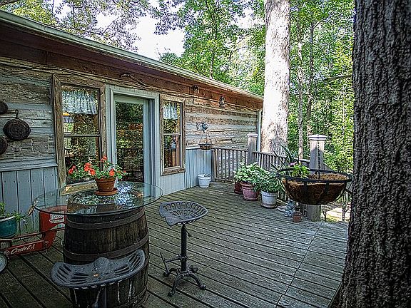 Unique, one of a kind hand hewn Log Cabin . Beautiful private setting. Mostly wooded aces. Dining room doors open up to private decks & quiet shaded seren backyard . Has had updates starting in 2000 until now . Has all new wood triple pane windows downstairs. Has updates in bathrooms and bedrooms. Has 3 new full glass doors. 3 decks all cleaned and stained. New hard wood throughout house . Has a extra extra large seasonal clothing closet upstairs. New 20x30 shop up at top of hill from house with its own power , heat and air . Is used as a sewing shop now . Bought more land from neighbor about two years ago to go with home and the other land . There is over 5+ acres now. Has outbuilding and lean two for lawnmowers . There is a wood stove in living room. Security system , smoke alarms, and 2 propane heaters for backup heat . Walk-in closets. Two central units, one for each floor. Call 270-836-2267 or 731-608-4763