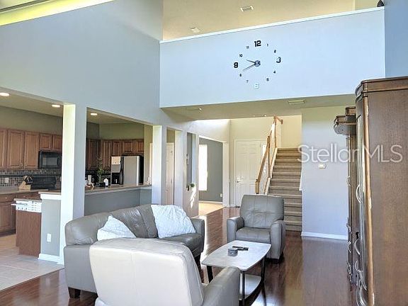 Welcome to your new home! As you pull up, you will immediately notice a brand new exterior paint with a modern color scheme, simplistic garden, and mature lawn. Once you enter the home, you will fall in love with the open floor plan, laminate flooring, 18 ft. vaulted ceilings, and abundance of natural lighting. The first floor master suite, breakfast nook, and main living space all back to beautiful lake view. Your master suite will have dual vanities, stand in shower, large walk in closet, and garden tub. This home has new interior paint throughout the first floor and in the upstairs guest room. There is plenty of space upstairs with 3 bedrooms and a large den. two upstairs bedrooms have a grand view of the lake. Don't forget the screened in and extended lanai with a refreshing view. Notable additions would be the upgraded washer and dryer, kitchen backsplash, and brand new gutters. This home also has a brand new ac unit replaced in 2017. Come visit this home soon! Harrison ranch is an active community with 5.5 miles of nature trails, soccer fields, tennis courts, basketball court, aerobic center, lounging area, large pool, billiards, ping pong and foosball. Your home will be close to the amenity center. You will also be zoned for a brand new high school and elementary school. This home is a short trip to numerous nearby beaches, Ellenton Premium Outlets, and I75.