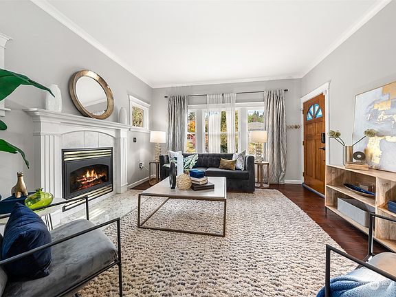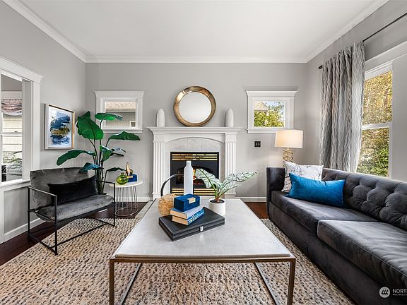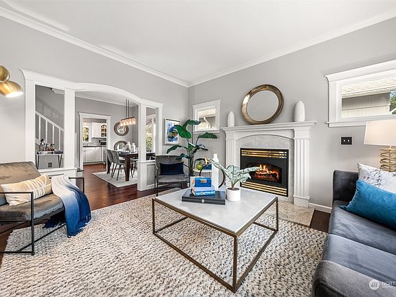 Lower Phinney Ridge Craftsman, remodeled from top to bottom offers 3 floors of turn-key living. Main level has walnut hardwoods, lots of windows, gas fireplace. A graceful arch leads from living to dining. Delightful kitchen with quartz counters, marble tile backsplash, accented w/ gold hardware & gooseneck faucet. 2 main floor bedrooms share elegantly appointed bath. The top floor offers a gorgeous primary suite w/ spa-like, sky-lit bathroom, marble & gold accents repeated. Daylight lower level- 4th bedroom, 3rd bath, huge family room & utility room, exterior access. Mature plantings frame the cute yard & deck. Converted garage ideal as art studio or storage for all your toys. 65th St & Phinney Ave shops/cafes just a short stroll away!