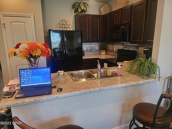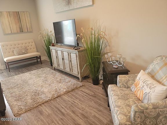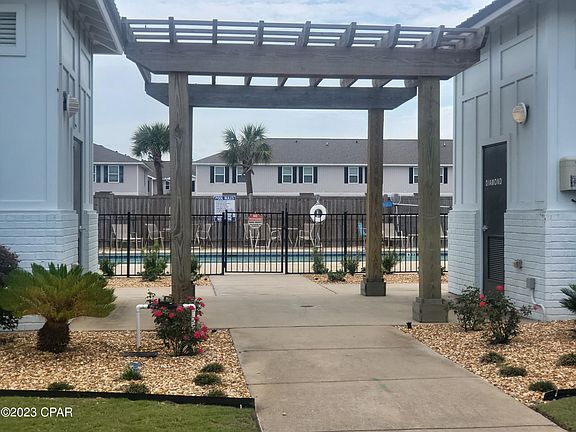 Welcome to Sentinel Point. This townhome complex is located just minutes from Tyndall Air Force Base. As you enter this townhome you find quality paint throughout with orange peel textured walls. Downstairs you will find vinyl plank flooring and the kitchen has a breakfast bar that looks out to living area and recessed panel cabinetry. The appliances include a microwave, stove, and dishwasher. Upstairs you will find plush carpet in each of the bedrooms and a laundry room. The master bedroom has a walk-in closet and the bath has a shower only. The additional bathroom has a shower/tub combo. The countertops are laminate in the kitchen and bathrooms. Owners enjoy the added benefits of a homeowners association that includes a pool area, additional common area throughout, and landscape. Walk to cofffee, breakfast, banks and shopping center across the hwy.