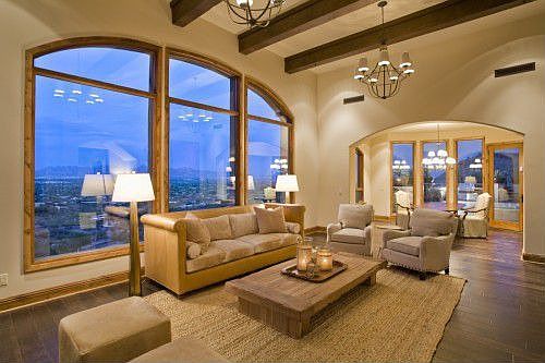 View website: http://5841equartzmountaindrive.ePropertySites.com - Luxury hillside estate with forever views nestled on 1.55 acres located in prestigious guard gated La Place Du Sommet. Gorgeous new custom offering 7,868 sq. ft. with unobstructed city mountain VIEWS. Complete with the finest amenities & features including 5 bedrooms, 6.5 baths, study, exercise room, game room, 4 fireplaces, indoor pool room with wet bar & bath, outdoor terraces, raised spa, outdoor kitchen, 2 elevators to upper & lower levels and much more. Fine finishes throughout such as travertine & wood plank flooring, granite, glass tile baths, Viking appliances, Cantera stone, custom cabinetry and more.