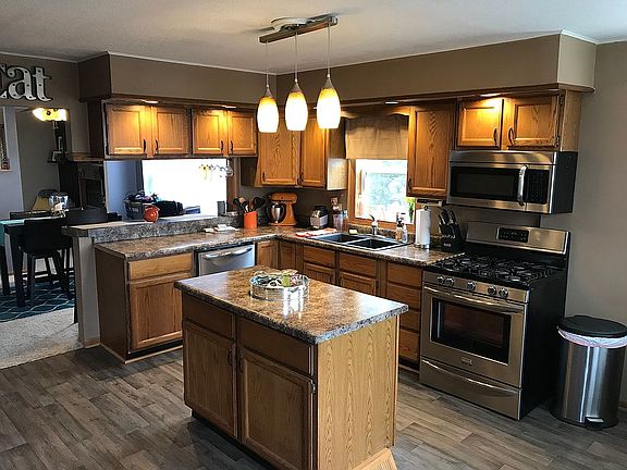 Brand new furnace and a/c with ten year manufacturer warranty All new matching stainless fridgidaire appliances Remodeled updated bathroom and kitchen Huge two car garage with loft up top Two extra building in the back for storage Walk out deck off master bedroom Patio deck off the kitchen Patio deck off the living room with French doors Stamped concrete patio under the upstairs deck Upstairs laundry