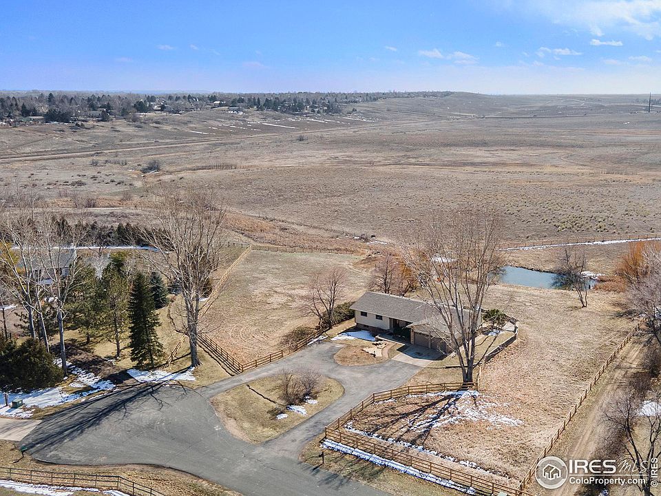 Country living in the city! Hard to find 2.4 acre horse property in the desirable Scenic Knolls neighborhood. 5 bedroom, 3 bath home is located at the end of peaceful street and backs to Hazaleus Natural Area, giving you unobstructed views of the foothills - that will never be developed! Ranch style home offers lower level walkout, decks with views, wood floors, primary bedroom with private 3/4 bath ensuite, office, fireplace, 2 car garage, your own private pond, barn with hayloft, corral, roof replaced in 2019, paved driveway and entire acreage is fenced. The property comes with irrigation water through Scenic Knolls Water Association and is set up with pump to water pastures. Don't miss your chance to live your best Colorado life - view wildlife out your kitchen window, ride horses on your land, sip wine on your deck watching the sunset, fish in your own pond and still be just minutes from all Ft Collins has to offer!