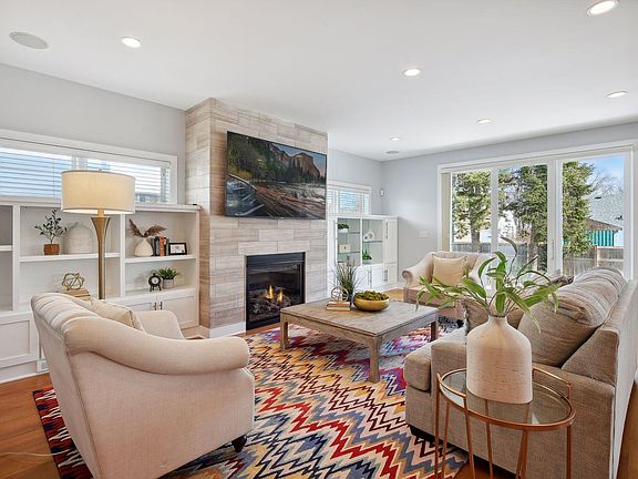 Enjoy a main level that is more spacious than most new construction home layouts in the area, large windows flooding the space with natural light and quarter sawn white oak floors on main and upper level. A luxurious primary bedroom suite, two additional junior bedrooms, a homework / hobby zone sits centrally between the two and laundry round out the upper level. The lower level features a large family room, wet bar with beverage fridge, exercise room, bedroom and 3/4 bathroom. The Sellers have sought a bid to add an egress window and closet into the exercise room to create the 5th bedroom (an allowance would be available from Sellers at time of closing!). The backyard is fully fenced and offers a flat playable lawn, patio space with a gas line for ease of grilling and enjoy the Sonos sound system inside and out. The two-car heated garage is extra deep and offers tall ceilings ideal for additional storage solutions, has a floor drain, hot/cold water and is wired for cable and internet.