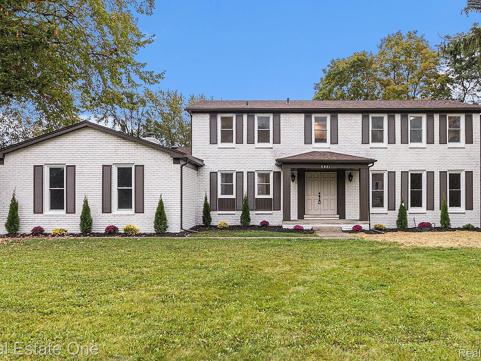 Welcome to this stunning brick colonial that has undergone a complete transformation in 2023! Every room has been tastefully remodeled, creating a fresh and modern atmosphere throughout. As you step inside, you'll immediately notice the attention to detail and the seamless flow of the main floor. Refinished hardwood floors grace most of the house, while the foyer, kitchen, and family room feature wood laminate flooring. The heart of the home is the impressive kitchen, showcasing granite counters, a ceramic backsplash, white cabinets, and top-of-the-line stainless steel appliances. An inviting eating area complements this space, creating a perfect hub for family meals. The kitchen seamlessly flows into the family room, with a charming brick fireplace and a door wall that opens up to a deck overlooking a generously sized backyard - ideal for outdoor entertaining and relaxation. The dining room, situated off the living room, sets the stage for the ideal hosting of large gatherings. Convenience meets style with a well-placed mudroom/laundry room and a half bath as you enter from the garage. The primary suite is a sanctuary with a spacious walk-in closet and an updated bathroom featuring a luxurious shower. The other three bedrooms offer ample dimensions, ensuring comfortable living for all. The full basement, complete with glass block windows, painted ceiling, and floor, presents exciting potential for additional living space or a personalized recreation area. All-new windows throughout the home bring in abundant natural light and enhance energy efficiency. A new tear-off roof in 2022, and brand new AC and hot water heater offer both aesthetic appeal and peace of mind. A two-car attached side-entry garage provides convenience and ample storage. Enjoy the benefit of being in close proximity to schools, dining options, shops, the library, and the West Bloomfield water park.