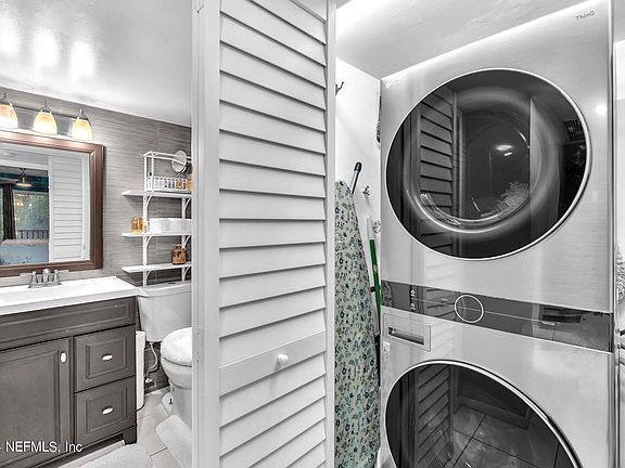 Step into this beautifully updated 1-bedroom, 1-bathroom condo, where modern convenience meets stylish living. The kitchen shines with sleek stainless-steel appliances, perfect for the home chef. A washer and dryer are thoughtfully included, making laundry a breeze. The spacious bedroom features 2 updated closets, offering ample storage space. This unit boasts a brand-new HVAC unit, and a brand-new roof, ensuring year-round comfort and peace of mind for years to come. The freshly updated primary bathroom features modern fixtures, a walk-in shower, and elegant tile work, creating a luxurious retreat within your home. Freshly painted interiors and beautiful accent wall, create a bright and inviting atmosphere, ready for you to make it your own. Enjoy the Florida breeze on the covered balcony with family and friends. This condo is a perfect blend of comfort and sophistication, ideal for anyone seeking a move-in ready home. Furniture negotiable.