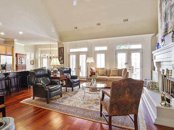Chateau Elan House sits on one of the largest private lots in Oxley Village. Ranch with open floor plan, 3 car garage with 988 sq. ft. and versatile finished room / bath above. Outdoor Living space complete with built in Kitchen (Grill, Warming Drawer, Refrigerator, Stainless Steel outdoor sink and Large granite bar). Extensive patio has a large brick Fireplace surrounded by beautiful private landscaping.