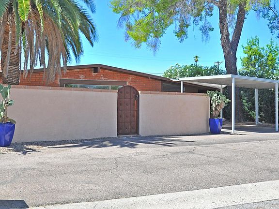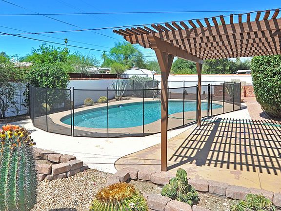 This solid red brick 4 bedroom home features a beautiful front courtyard and large rear yard with sparkling pool and easy care landscape! Spacious open kitchen to the living room with fireplace. Kitchen features granite counters, beautiful tile backsplash, built in appliances plus lots of cabinets and counter space. Low energy windows, concrete floors, carpet in 2 bedrooms only, fresh paint, no popcorn ceilings, A/C, walk-in closets, ceiling fans, skylights in kitchen and hall bath, and laundry room with washer/dryer. Lots of privacy and space. Pool area is enclosed with a new child safety fence. 1 yr minimum lease. Non-smoking home. $45 app fee per adult. Renters insurance required. Fence pool with pool service. No smoking Up to 2 pets allowed with (with breed restrictions) plus $200 fee per animal and monthly pet rent.