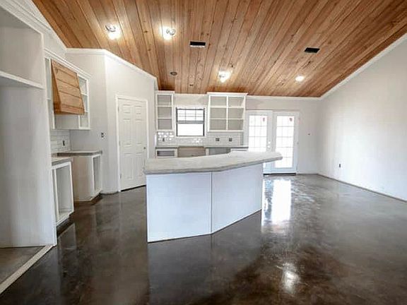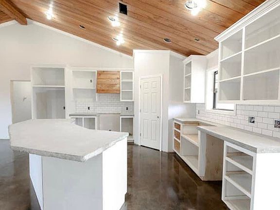 This gorgeous newly constructed ranch style farmhouse is situated on 6.7 acres and includes a beautiful creek running through the back wooded area. The acreage is full of vibrant oak trees, blooming magnolia trees and fruit trees. This home is located at the end of Grayce Lane with no thru traffic. This open concept home is a hand-crafted, one-of-a-kind custom-built home that includes beautiful tongue and groove wood-stained ceilings, stained concrete floors throughout and gorgeous concrete countertops in the kitchen and bathrooms. The large open kitchen includes a gorgeous tiled backsplash with custom built cabinets, walk-in pantry and an island that includes tons of storage. The Master bath includes a soaking tub, a separate tiled walk-in shower and large his/her walk-in closets. The 2nd bath includes a beautifully tiled tub/shower as well. The home is equipped with a gas tankless hot water tank, all kitchen appliances with a gas stove.