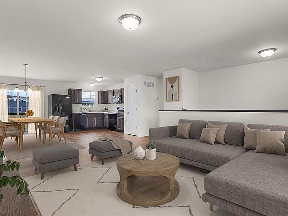 Sparkling, brand new, MOVE IN READY home in O'Brien Place is situated on one of the larger corner lots in the subdivision... 1/4 acre! Awesome, bold color combination of the vinyl siding & paneled shutters offers a sleek curb appeal. You'll love the wide, maintenance free staircase to the front door! Rich, engineered hardwood flooring flows through the main areas of the home with carpeting in the bedrooms. The kitchen features dark maple cabinetry, black appliances and a large pantry! Large dining area and a sliding door leading to a future deck/patio area! The owners suite features a full bath with adult height vanity & large walk in closet! On the main floor, you'll find 2 additional bedrooms & a second full bathroom. The garage offers an extended 2nd bay (27.5 deep) for even more storage or workshop area! Upgraded garage door with windows! Home has been virtually staged as well as the grass in the photos. Full sod...front/back and sides will be laid as soon as possible by builder!