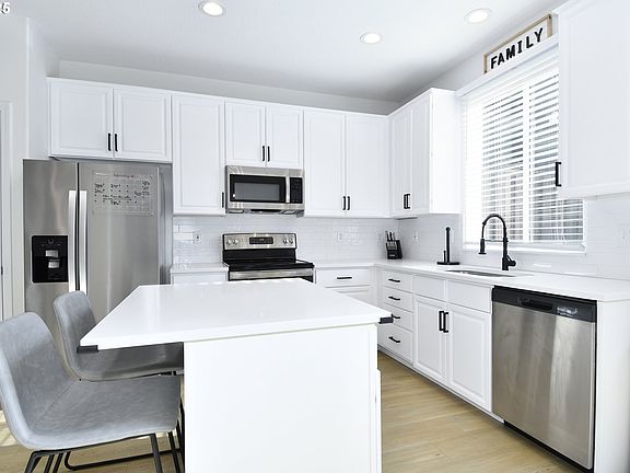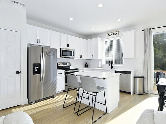 This Beautiful 3-bedroom, 2.5-bath townhouse in the Barlow School District is upgraded & move-in ready. Offering modern updates throughout, with recessed lighting, a warm gas fireplace, upgraded molding & window coverings, and a stylish kitchen featuring stainless steel appliances, including newer fridge, quartz countertops, and an island with seating. The dining room slider opens to a private deck, perfect for entertaining. All 3 bedrooms feature vaulted ceilings. Large primary suite has a bathroom with dual sinks & shower, walk-in closet with built-in organizer and 3 windows to let in all the natural light. The finished garage has epoxy flooring adding to the home's completed touch. Don’t miss your opportunity to secure this home with amazing value under $400K!