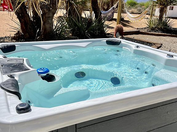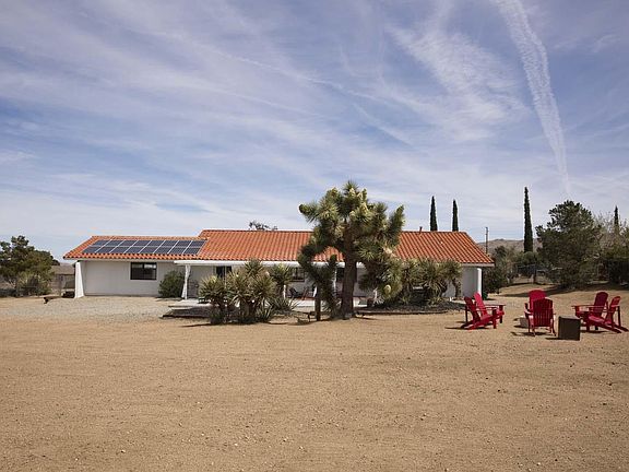 Kick back and relax in this calm, modern, spacious home, minutes to Joshua Tree National Park. Nestled into the exclusive Sky Harbor neighborhood, Casa Mila has an upscale hotel vibe and is the perfect private home to wind down after hiking, rock climbing, horseback riding with family, friends, or to just relax in style. The 2,000 sf renovated home sports a new hot tub, two new fire pits with their own seating areas, a stunning fireplace, and a new BBQ for all you grill aficionados out there. The Details: North of Rte. 62, in the best area of Yucca Valley/Joshua Tree. Open plan-style kitchen with lots of counter space, outfitted for an intimate meal or large feast. It is fully stocked with all of your cooking essentials including a Keurig and Nespresso coffee/espresso makers, double toaster, BBQ utensils, blender, cookware, sharp knives, earthenware dishes, plastic cups for dining outdoors, a large family-style fridge & freezer, microwave and a new dishwasher. Outdoors is spacious, elegant, and private. A large patio seats eight and sports a new fire pit, new barbecue, corn hole, new hot tub, hammocks, Adirondack chairs with a second fire pit, views of Joshua trees and stunning views of Mount San Gorgonio. The house sits on one of the highest areas in Yucca Valley. You'll feel right at home! Living Room: large, luxurious room with full-sized sleeper couch, Barcelona chairs and ottomans that surround a dramatic fireplace with a large screen smart TV. Den: Palm Springs style wet bar is a classic to start the night. Other fun stuff includes boardgames, puzzles and books to keep all the family and friends entertained. Dining Room: seats six -eight, open, easy access to kitchen. Each individual bedroom is equipped extremely comfortable mattresses, and your very own smart TV. Master bedroom: king bed with comfortable memory foam mattress, a newly renovated en suite bath, large closet, and smart TV. Double doors open to a patio overlooking the hot tub and views of Joshua trees and the nearby mountains. Bedroom 2: bright, new queen bed, smart TV, full closet, and work desk for those that need to check in with the office. Bedroom 3: bright, new queen bed, smart TV, full closet. Parking: sweeping circular drive entrance and double garage with EV charger. Parking for five cars. RV/Campers: easy access through gates on side of house; electrical access. We are located just 15-minutes from the West entrance of Joshua Tree National Park, and walking distance (1 mile) to black rock campgrounds , hiking and the famous California horse trail. - This is a 12 month lease of a fully furnished property. - 2 dog maximum - No smoking property - Does not include utilities - City of Yucca Valley enforces quiet hours between 10.00PM and 7.00AM - Background check and rental agreement required. - One or two dog under 50 pounds